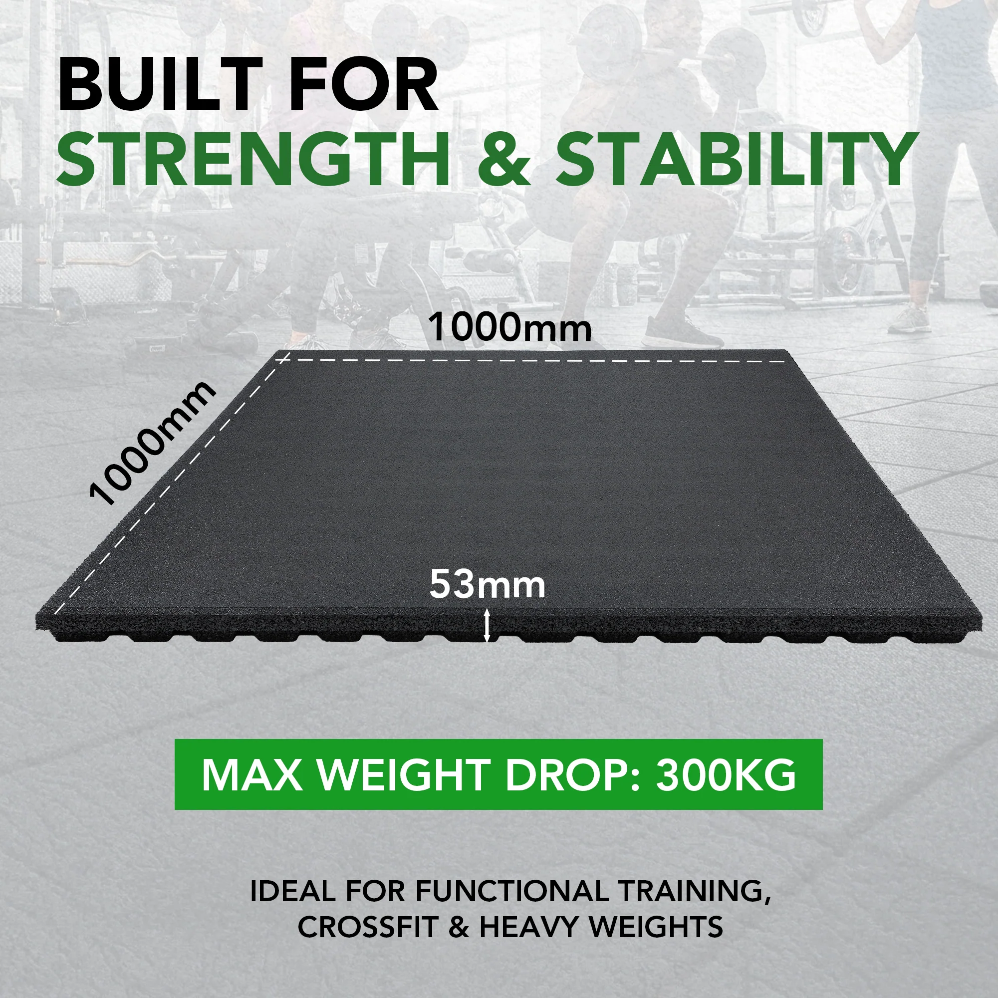 53mm Sprung PRO Rubber Anti-Shock Gym Mats